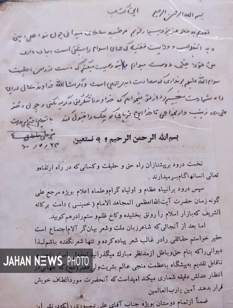 گروه فرهنگی جهان نیوز: در آستانه رونمایی از تقریظ رهبر معظم انقلاب بر کتاب «خانوم ماه» که روایتی خواندنی از زندگی خانم‌ناز علی‌نژاد(خانوم ماه)، همسر مجاهد و با ایمان شهید شیرعلی سلطانی است، جهان نیوز گفت‌وگویی ویژه با خانواده این شهید شاخص استان فارس انجام داده. شهید سلطانی، بانی مسجد المهدی(عج) در محله کوشک قوامی شیراز و از مبارزین و پیشگامان فرهنگی پیش از انقلاب بود که با تشکیل طبقات صالحین صدها جوان را با معارف دینی و آرمان‌های انقلابی پرورش داد و پس از پیروزی انقلاب نیز تا دم شهادت در خط جهاد و خدمت ایستاد.