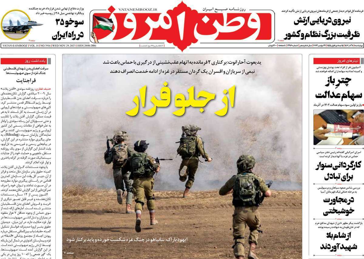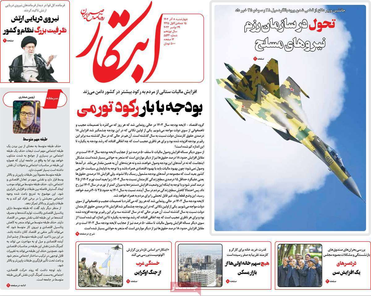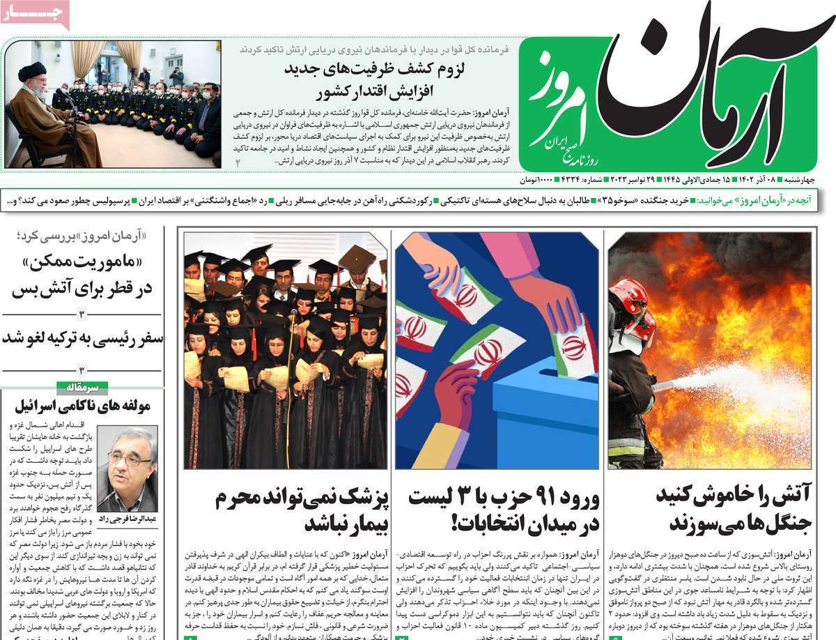 عناوین صفحه نخست روزنامه‌های سیاسی امروز (چهارشنبه ۸ آذر ۱۴۰۲) را مشاهده می‌کنید. برای مشاهده بهتر تصاویر روی عبارت «تصاویر بزرگ» کلیک کنید.
