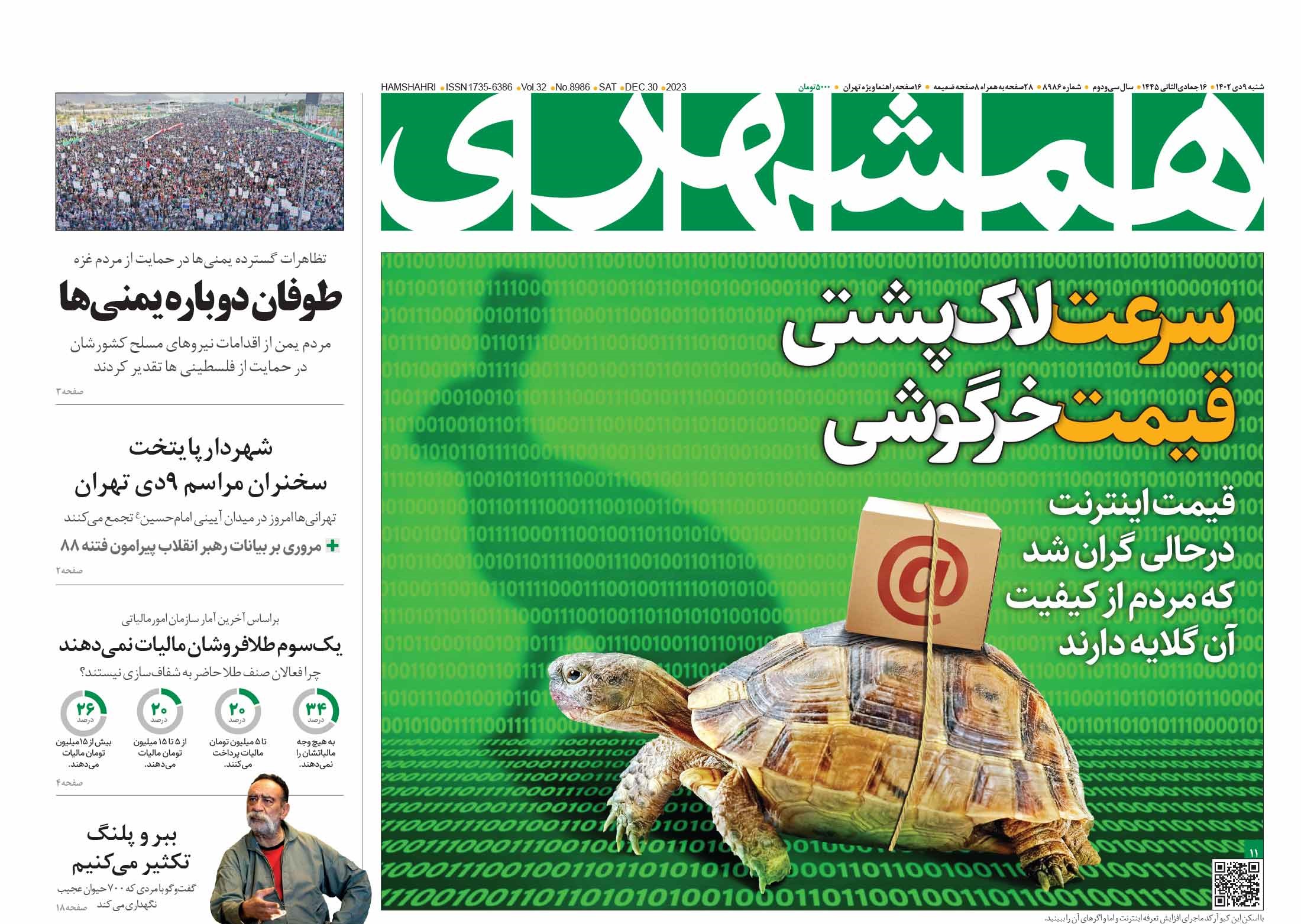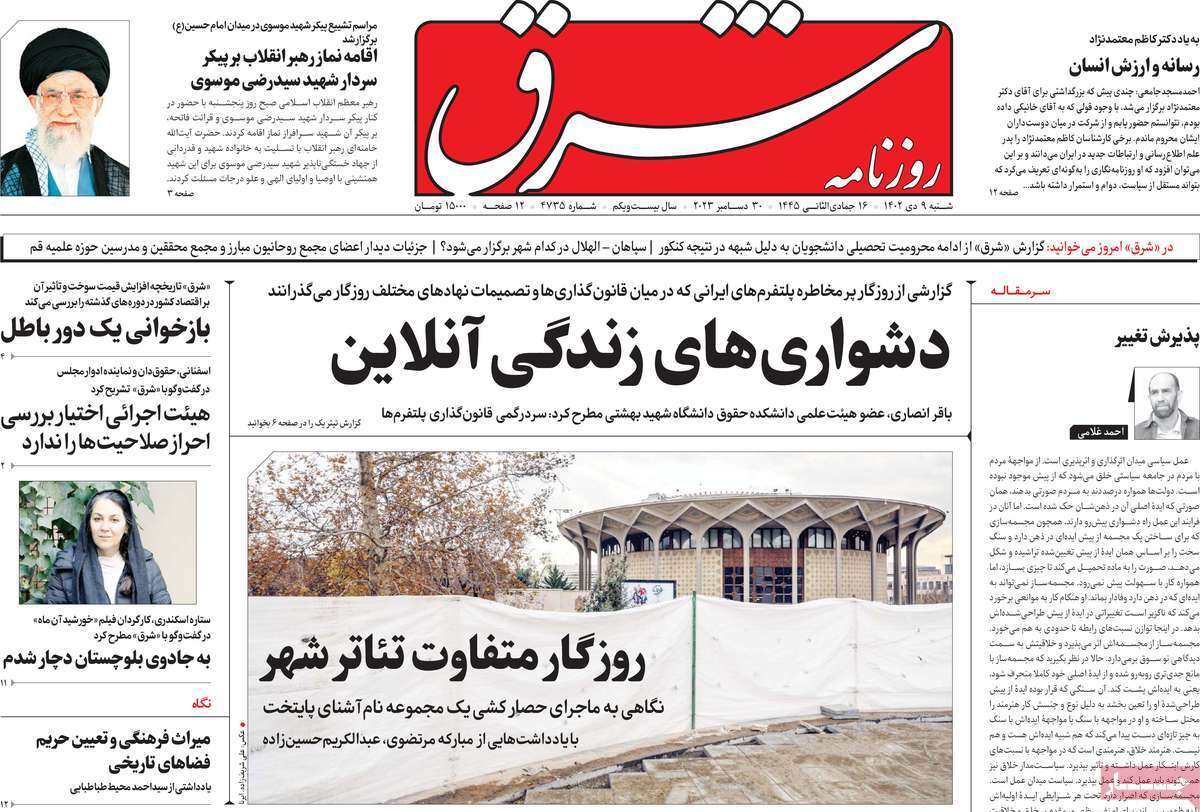 عناوین صفحه نخست روزنامههای سیاسی امروز (شنبه ۹ دی ۱۴۰۲) را مشاهده میکنید. برای مشاهده بهتر تصاویر روی عبارت «تصاویر بزرگ» کلیک کنید.