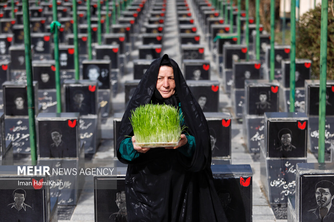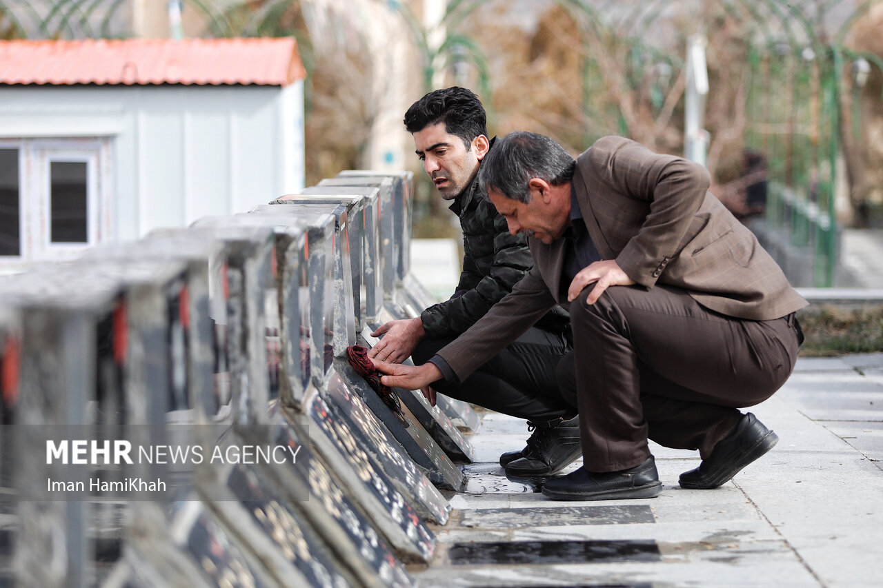 آئین غبارروبی مزار شهدا ودیدار خانواده شهدا با فرزندان شهیدشان در پنجشنبه آخر سال صبح امروز در محل باغ بهشت همدان برگزار شد.