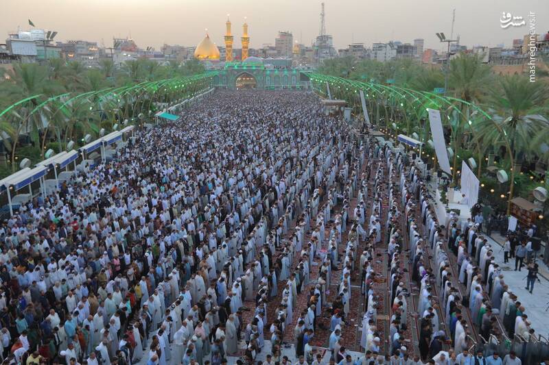 نماز عید سعید قربان با حضور زائران و مجاوران حرمین کربلا در بینالحرمین اقامه شد.