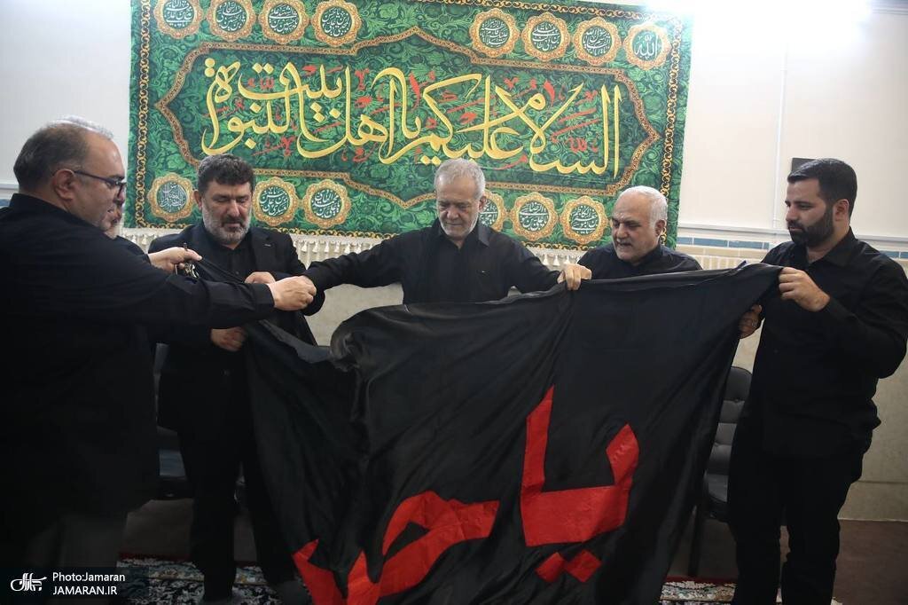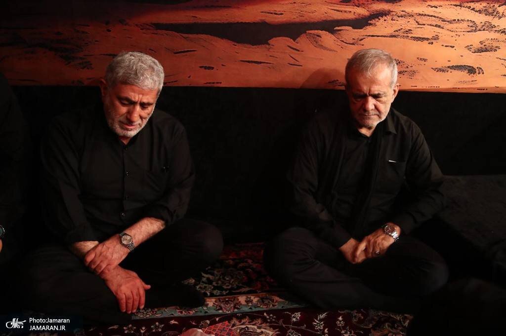 مسعود پزشکیان رئیس جمهور منتخب و سردار قاآنی صبح امروز با حضور در مهدیه امام حسن مجتبی، در مراسم عزاداری روز عاشورا شرکت کردند.