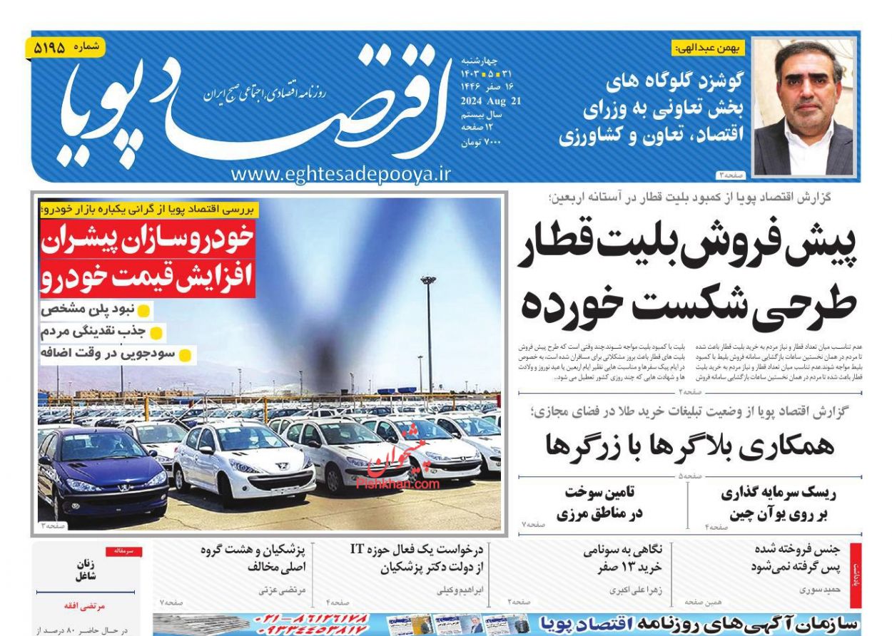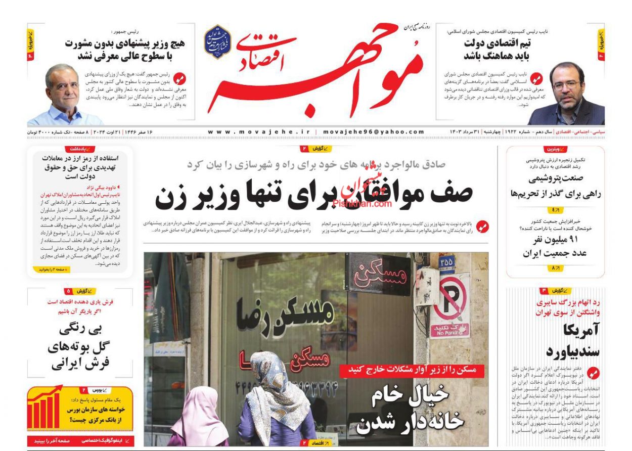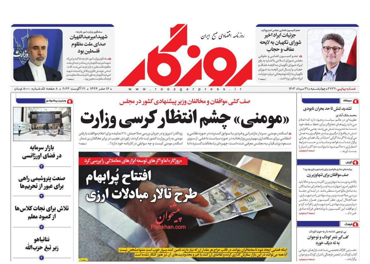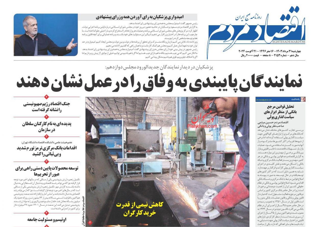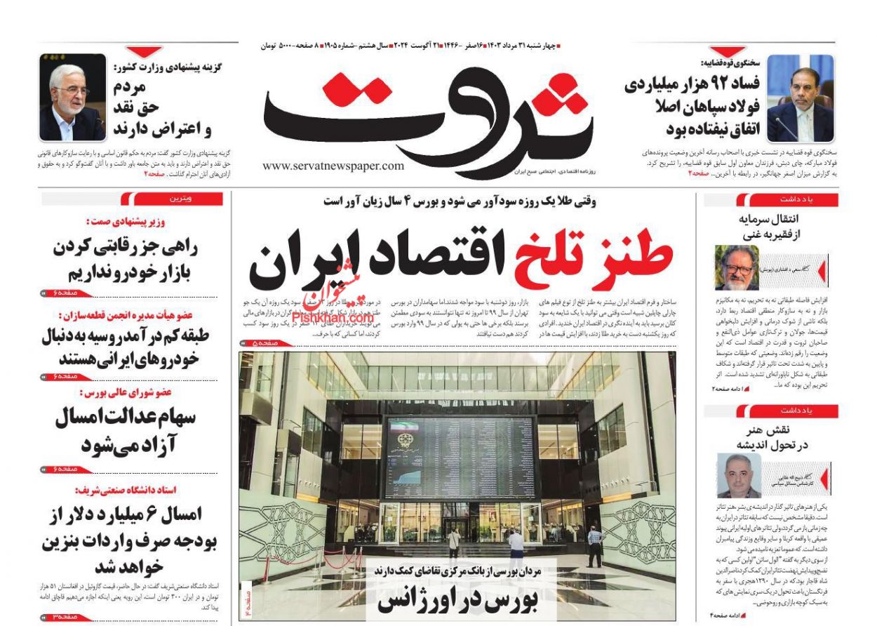 عناوین صفحه نخست روزنامه های اقتصادی چهارشنبه ۳۱ مرداد را مشاهده می کنید.