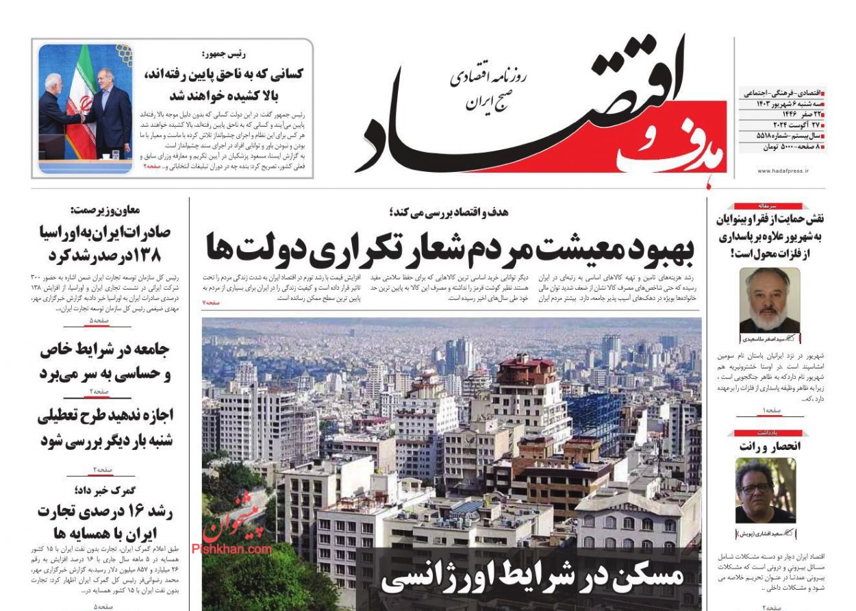 روزنامههای اقتصادی؛ سهشنبه ۶ شهريور