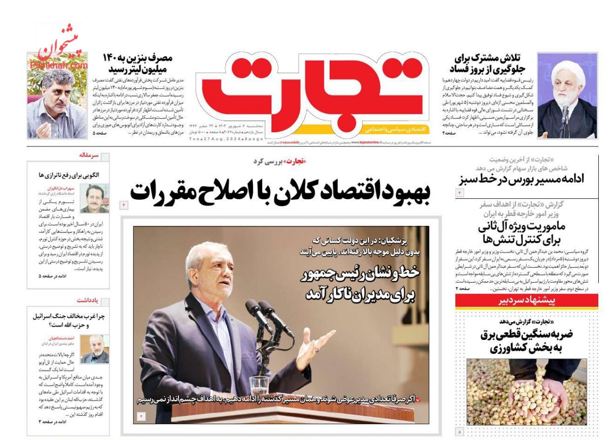 صفحه نخست روزنامه های اقتصادی