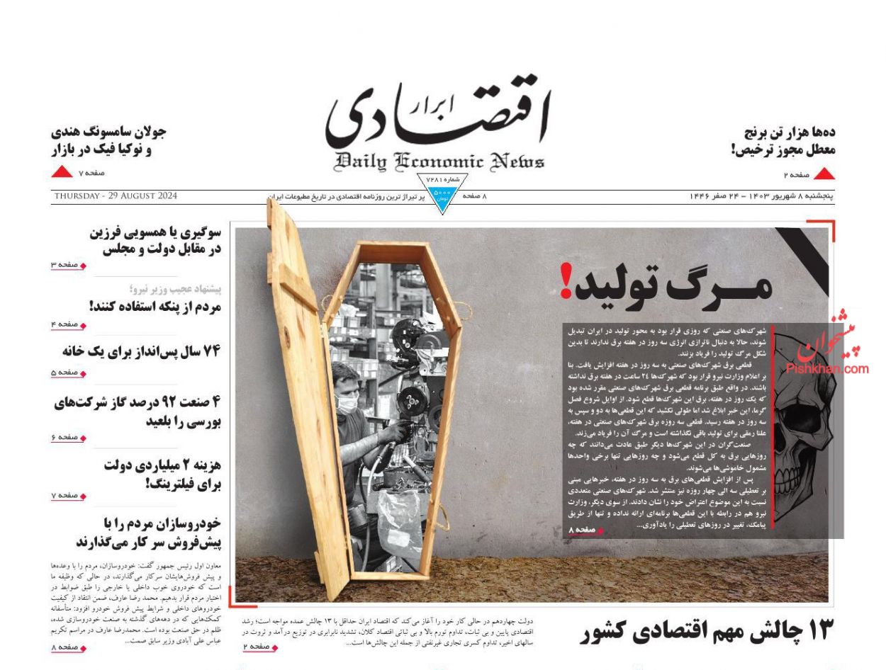 روزنامههای اقتصادی؛ پنجشنبه ۸ شهريور