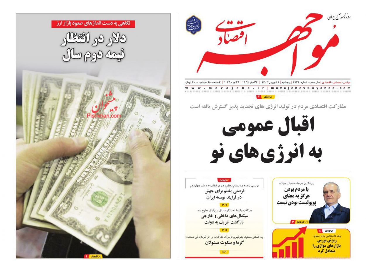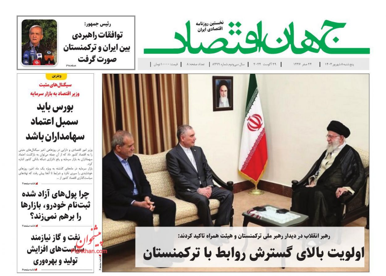 عناوین صفحه نخست روزنامه های اقتصادی پنجشنبه ۸ شهريور را مشاهده می کنید.
