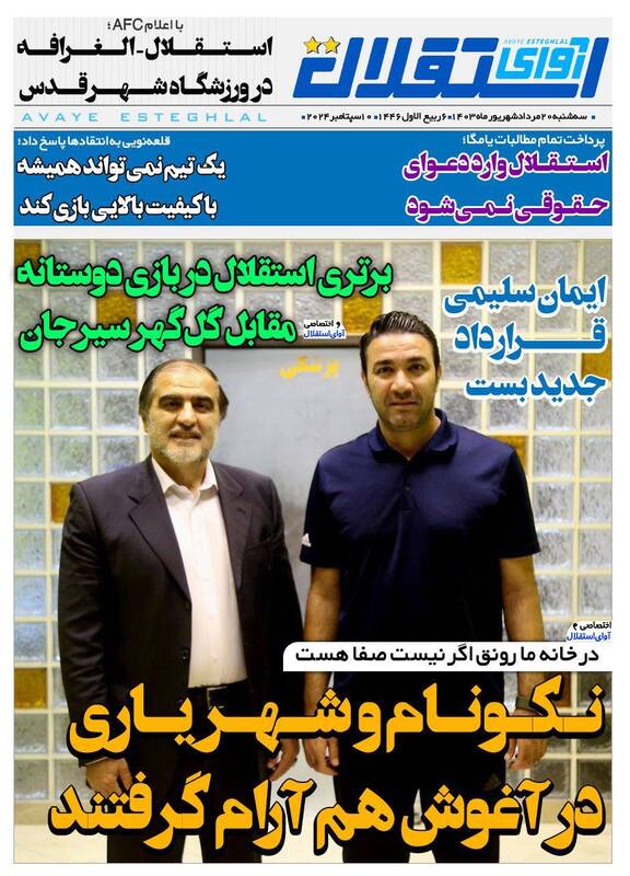 صفحه نخست روزنامه‌های ورزشی امروز (سه شنبه ۲۰ شهريور ۱۴۰۳) را در ادامه مشاهده می‌کنید. برای مشاهده بهتر تصاویر روی عبارت «تصاویر بزرگ» کلیک کنید.