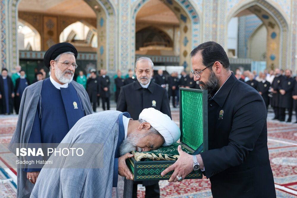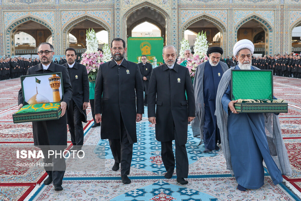 مراسم تعویض پرچم و پوش ضریح مطهر رضوی، صبح امروز چهارشنبه ۵ شهریور ماه ۱۴۰۴ برگزار شد.