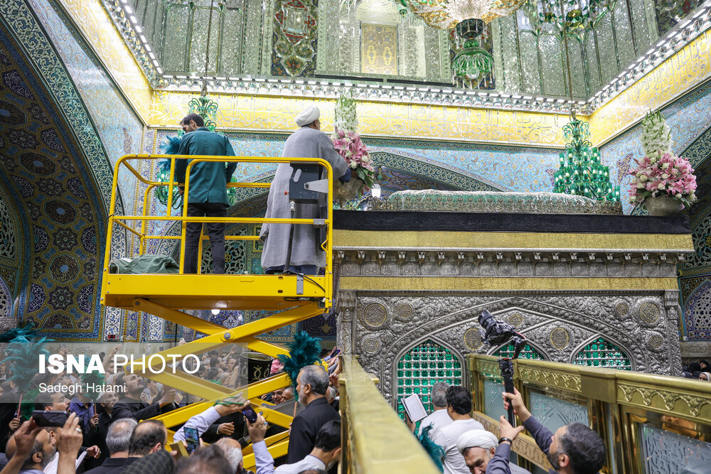 آیین سنتی تعویض پوش ضریح مطهر امام رضا(ع)