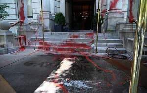 به گزارش جهان نیوز،معترضان با ریختن رنگ قرمز بر زمین و نوشتن شعار «جو خان دروغ می‌گوید، غزه در حال جان دادن است»، سیاست‌های رسانه‌ای این روزنامه در قبال جنگ علیه غزه و پوشش خبری نامناسب آن را محکوم کردند.