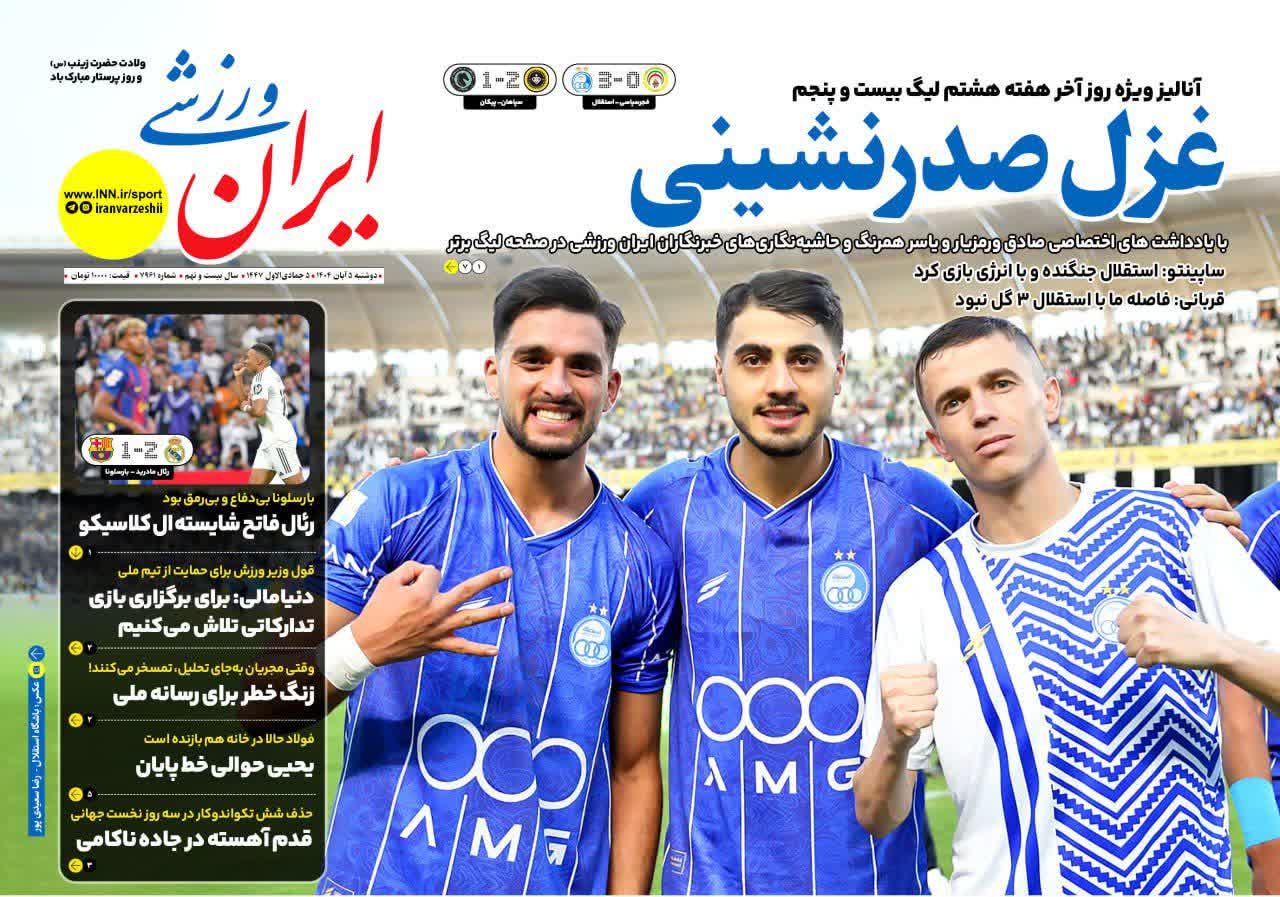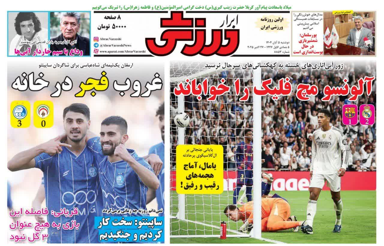 روزنامههای ورزشی دوشنبه ۵ آبان ۱۴۰۴