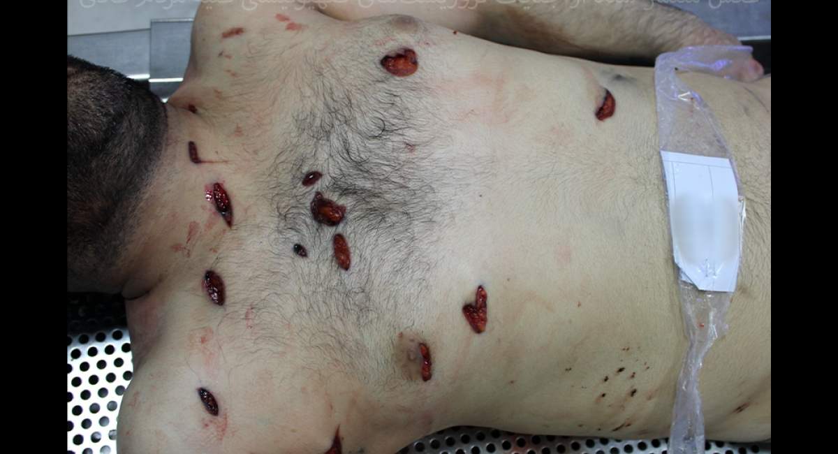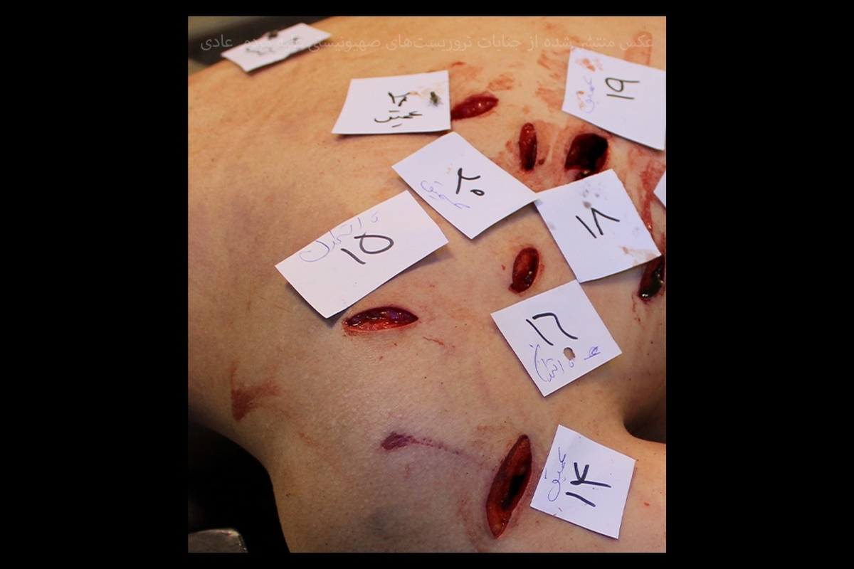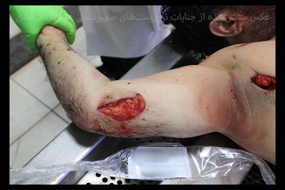 تصاویر منتشرشده از آثار بهجایمانده بر پیکر قربانیان نشان میدهد کشتهشدگان مورد حمله ضربات متعدد سلاحهای سرد غالبا از پشت سر قرار گرفتهاند و تروریستها با اجسام به شدت تیز و برنده مانند قمه، قاچوهای بلند و دشنه، ضربات متعدد به قسمتهای مختلف قربانیان وارد کردهاند.