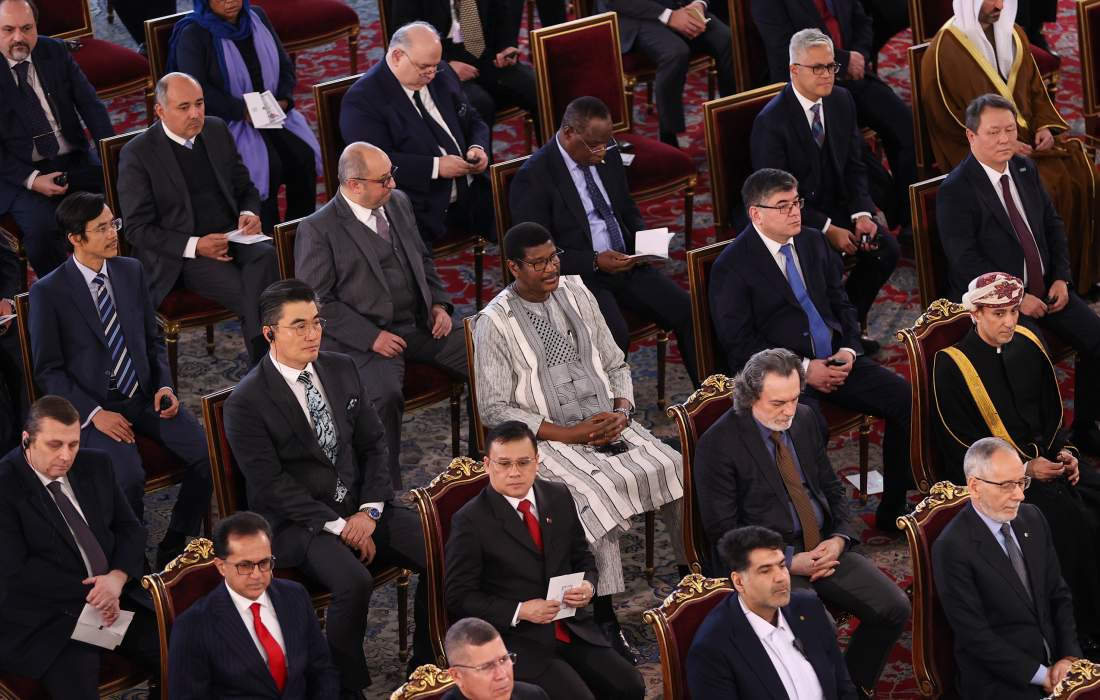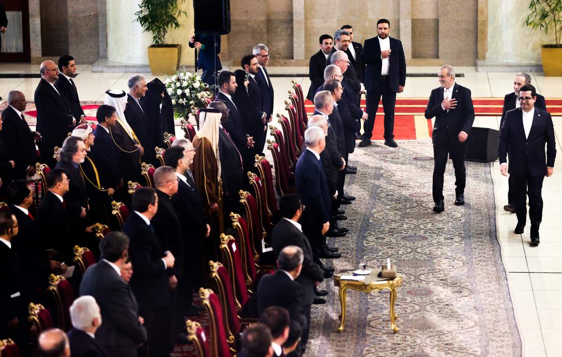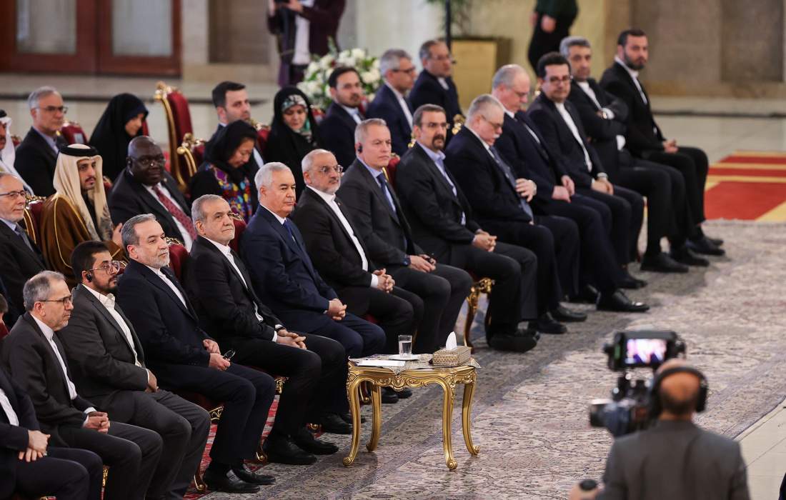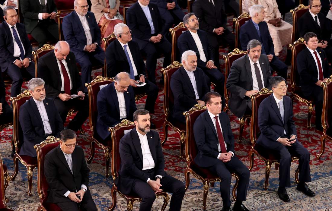 مراسم چهل و هفتمین سالروز پیروزی انقلاب اسلامی بعد از ظهر امروز دوشنبه با سخنرانی دکتر پزشکیان و با حضور سفرا و روسای نمایندگیهای بین المللی مقیم ایران در سالن اجلاس سران برگزار شد.