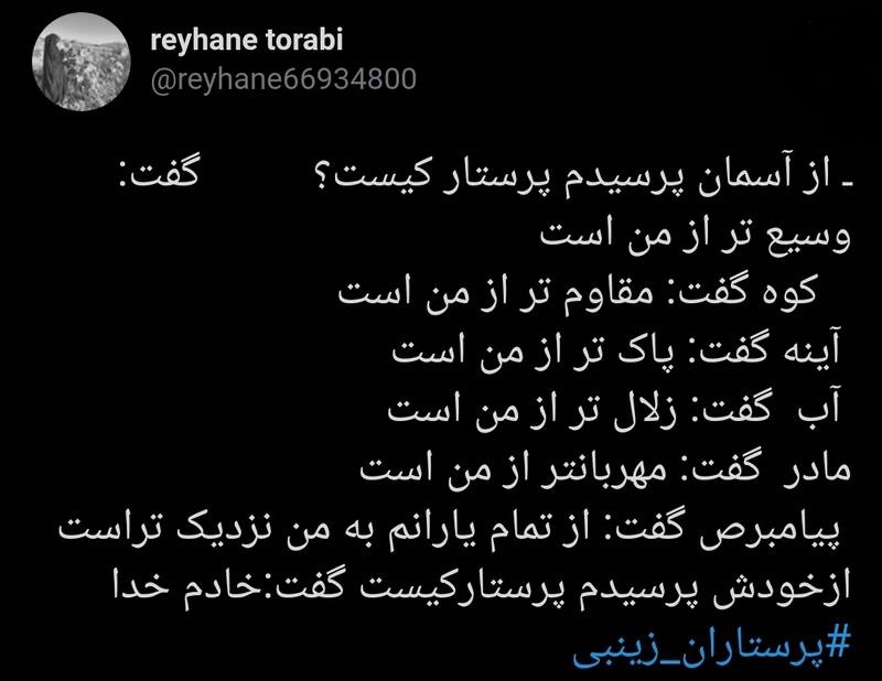 یکی از کاربران توییتر در صفحه شخصی خود همزمان با ولادت حضرت زینب (س) و روز پرستار با انتشار توییتی از صبر و استقامت رزمندگان جبهه سلامت قدردانی کرد.