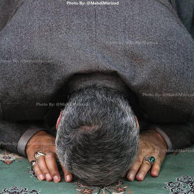 در این عکس سردار شهید سلیمانی در حالت سجده و میباشد.