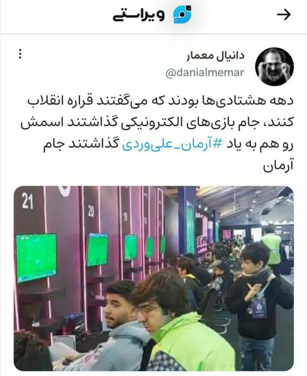 دانیال معمار در ویراستار به جام دهه هشتادیها به اسم شهید آرمان علی وردی اشاره کرده است.