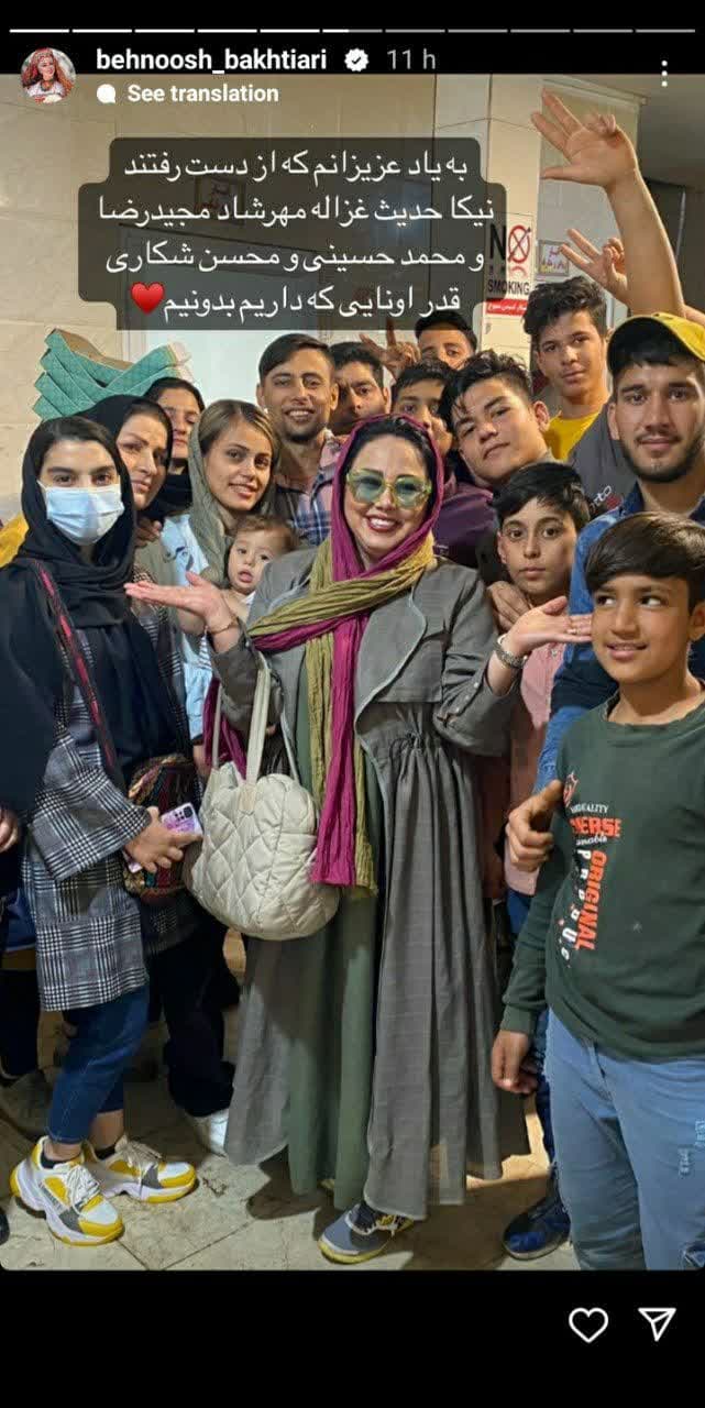 بهنوش بختیاری برای محمد حسینی از قاتلان شهید عجمیان، مجیدرضا رهنورد قاتل دو مدافع امنیت در مشهد و همچنین محسن شکاری که به جرم محاربه اعدام شد استوری منتشر کرده است.