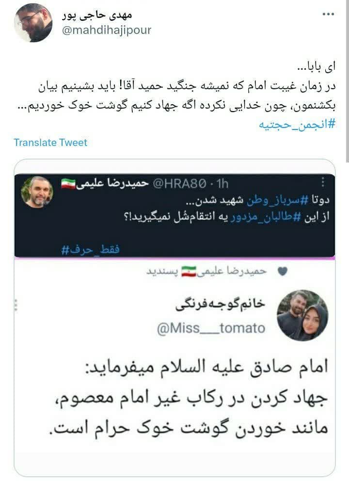 مهدی حاجی پور در صفحه شخصی خود به توییت حمید رضا علیمی واکنش نشان داده است.