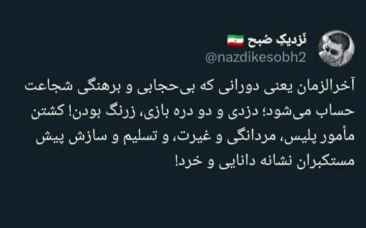 یکی از کاربران توییتر با ذکر نکاتی به دوران آخر الزمان اشاره کرده است.