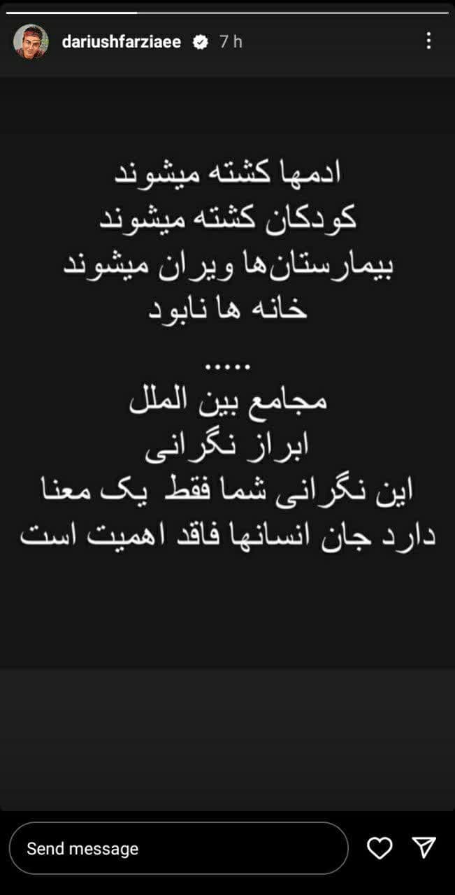 لااقل تهش یه تف و لعنتی هم نثار صهیونیستهای پلید کودک کش بعنوان عاملان این جنایات بی سابقه و حامی اصلی این خوکهای نجس یعنی آمریکائیهای نامرد جنایت پیشه میکردی تا برداشت دوگانه از نوشته ات نشه.