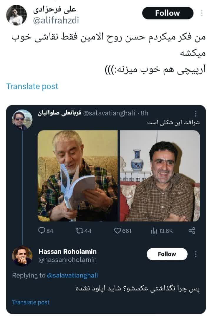 من فکر می کردم حسن روح الامین فقط نقاشی خوب می کشد آرپیچی هم خوب میزند.