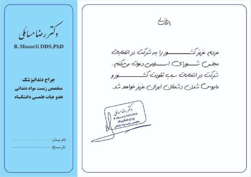 دکتر رضا مسائلی نیز با اشاره به اهمیت حضور مردم در انتخابات نوشت« شرکت در انتخابات سبب تقویت کشور و مایوس شدن دشمنان ایران عزیز خواهد شد»