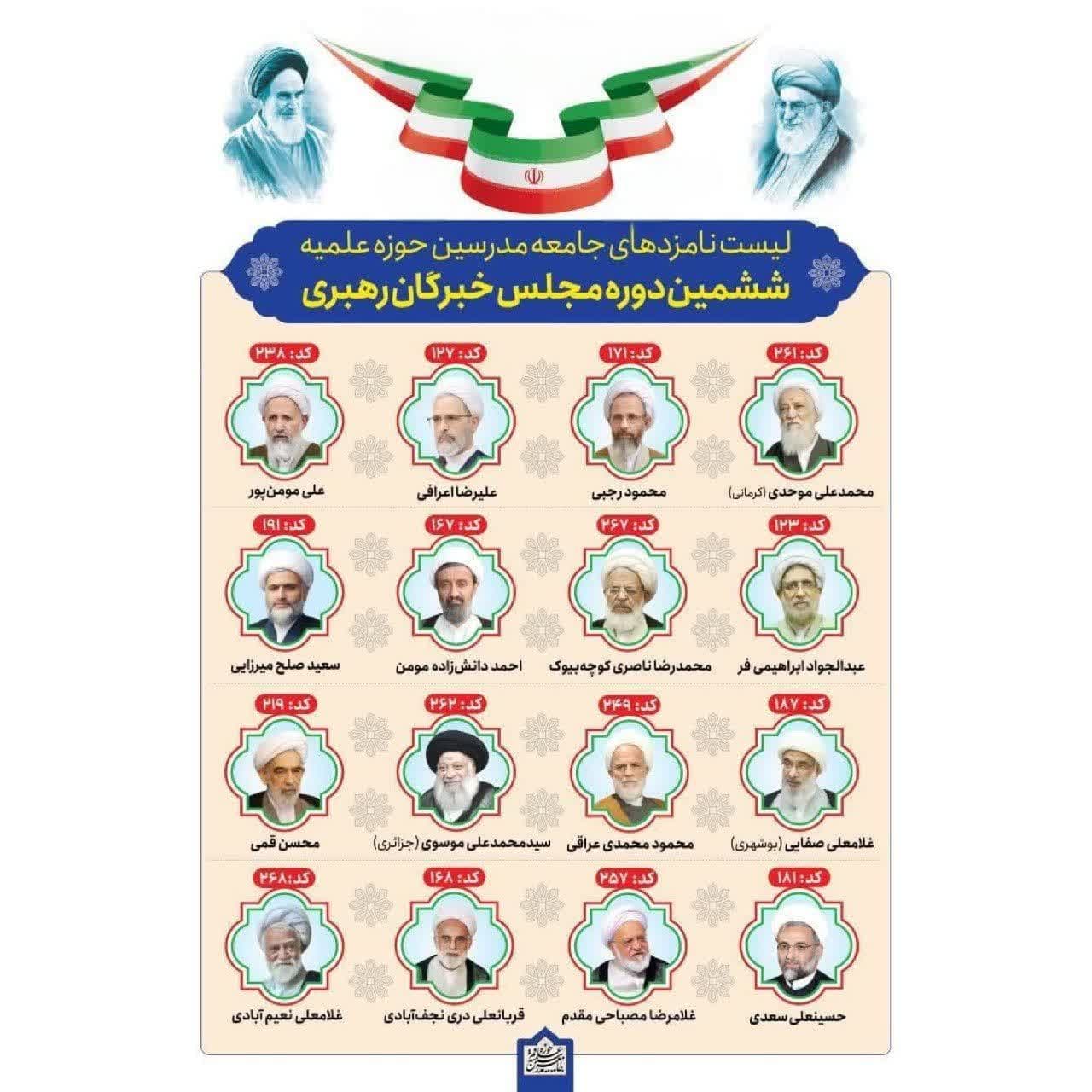 کاندیداهای جامعه مدرسین در انتخابات خبرگان رهبری