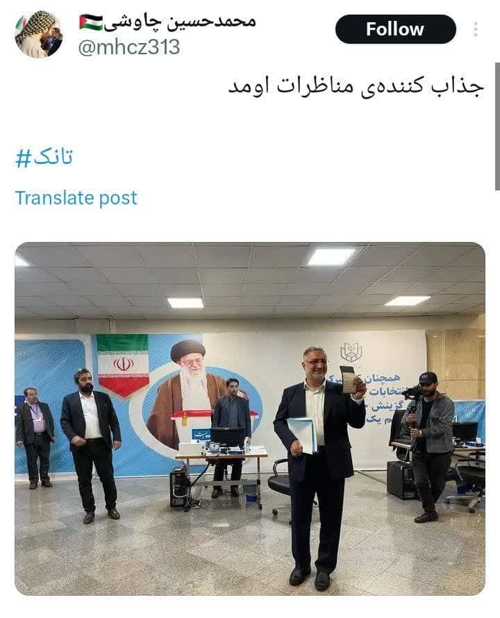 یکی از کاربران فضای مجازی به ثبت نام علیرضا زاکانی در انتخابات ریاست جمهوری، واکنش نشان داد.