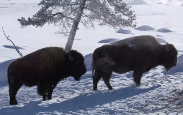 چند گرگ یک گاو کوهاندار را در برف شکار کردند.