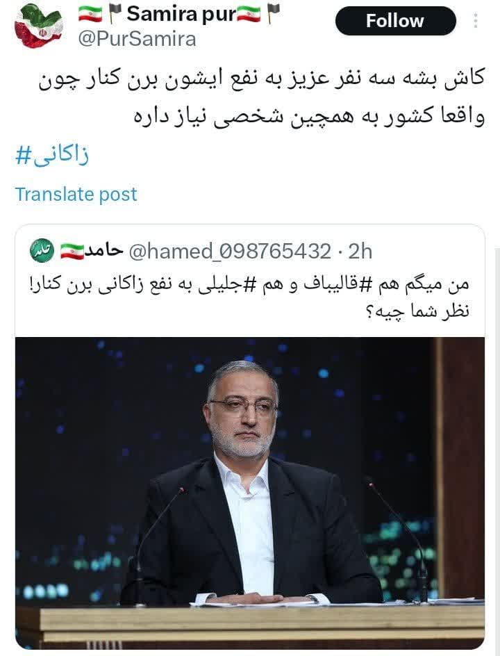 یکی از کاربران فضای مجازی درباره علیرضا زاکانی نامزد چهاردهمین دوره انتخابات ریاست جمهوری، مطلبی را در حساب کاربری خود در شبکه مجازی ایکس (توئیتر سابق) منتشر کرد.