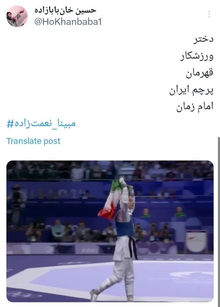 مبینا نعمت زاده بعد از پیروزی و کسب مدال برنز گفت: با امام زمان عهد کرده بودم مدال بگیرم مدالم را تقدیم مردم ایران و آقا امام زمان کنم.
