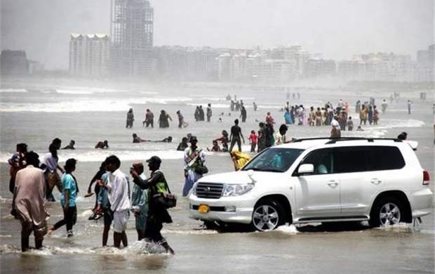 فیلمی از پناه بردن پاکستانیها به سواحل کراچی از گرمای شدید را مشاهده میکنید.