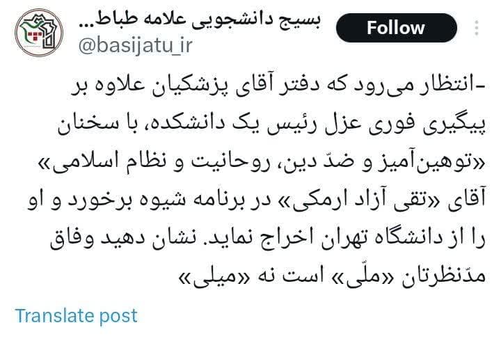 آقای پزشکیان نشان دهید وفاق مد نظرتان ملی است نه میلی.
