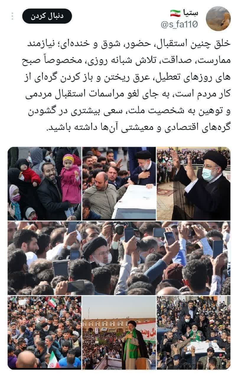 به جای لغو مراسمات استقبال مردمی، سعی بیشتری در گشودن گره های اقتصادی و معیشتی آن ها داشته باشید.
