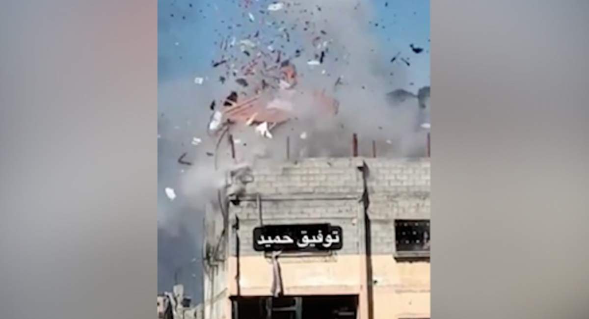 لحظه پرتاب بمب داخل ساختمانی در غزه
