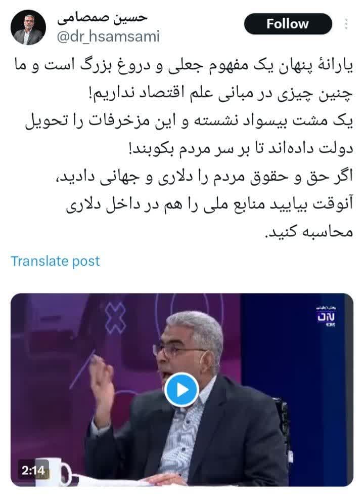 عضو کمیسیون اقتصادی مجلس گفت: یارانه پنهان یک مفهوم جعلی و دروغ بزرگ است و ما چنین چیزی در مبانی علم اقتصاد نداریم!