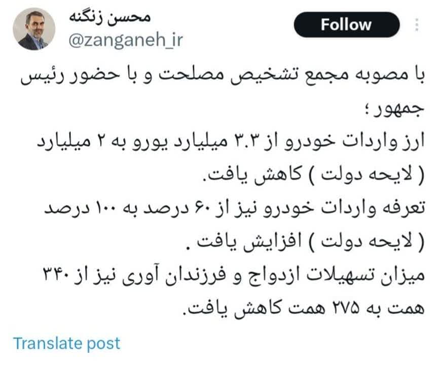 محسن زنگنه در صفحه شخصی خود در ایکس به مصوبات مجلس واکنش نشان داده است.