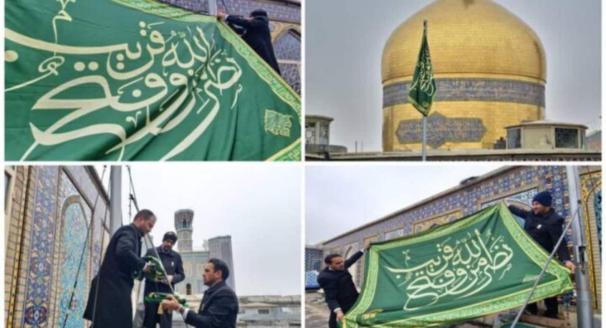 در آستانه تشییع پیکر مطهر شهید مقاومت، پرچم سبز «نَصرُ مِنَ الله و فَتح قَریب» در جوار گنبد طلایی حرم مطهر امام رضا علیهالسلام به اهتزاز درآمد.