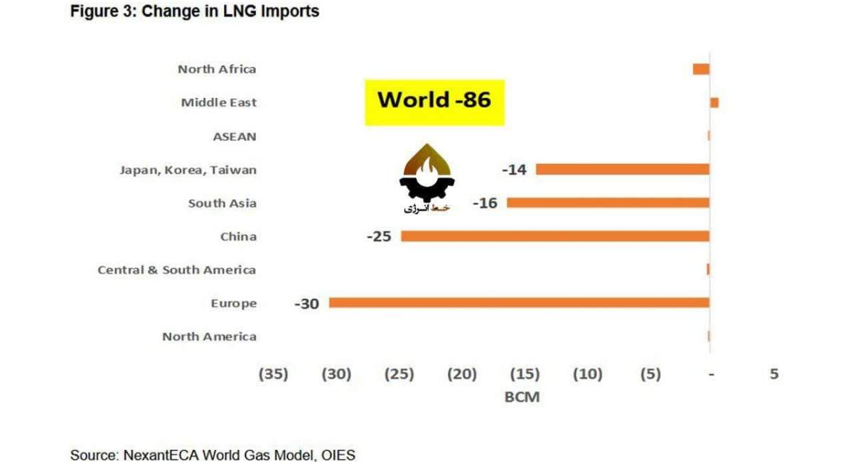 با بسته شدن تنگه هرمز به مدت یکسال، عرضه LNG حدود ۸۶ میلیارد متر مکعب کاهش مییابد که سهم اروپا ۳۰ و سهم چین ۲۵ میلیارد مترمکعب خواهد بود.