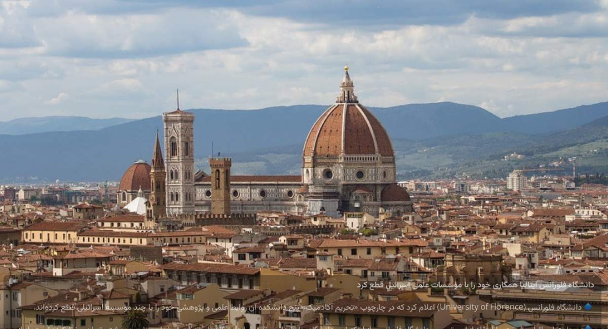 دانشگاه فلورانس ایتالیا اعلام کرد که در واکنش به جنایات رژیم اسرائیل در غزه و کرانه باختری به همکاریهای خود با مؤسسات دانشگاهی این رژیم پایان میدهد.