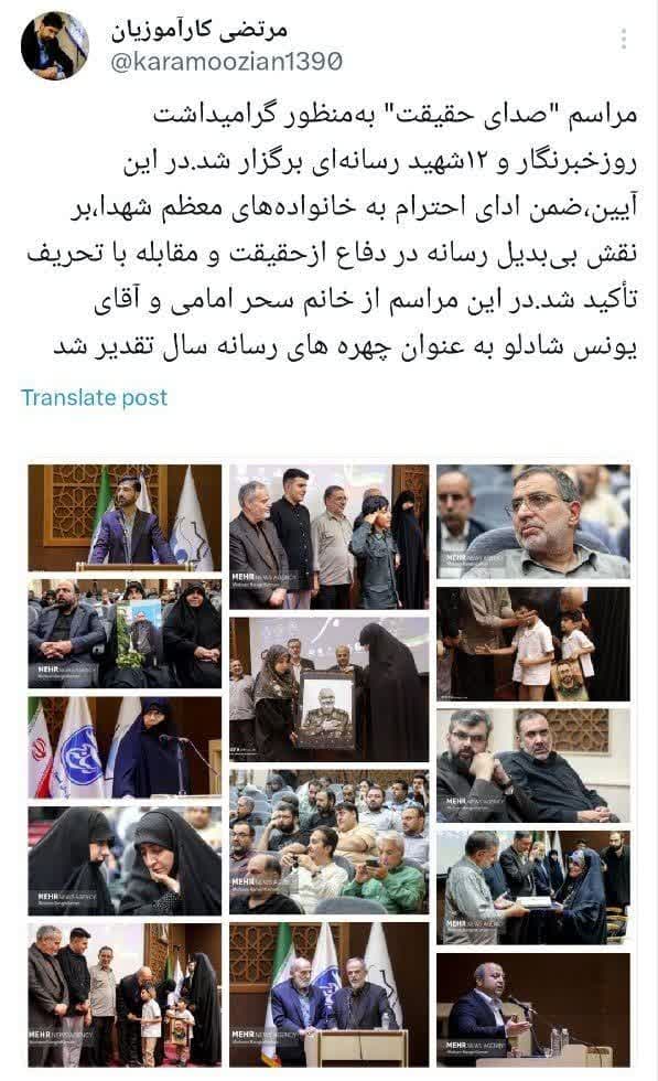 گرامیداشت ۱۲ شهید رسانه به همراه تقدیر از سحر امامی و یونس شادلو در مراسم "صدای حقیقت"