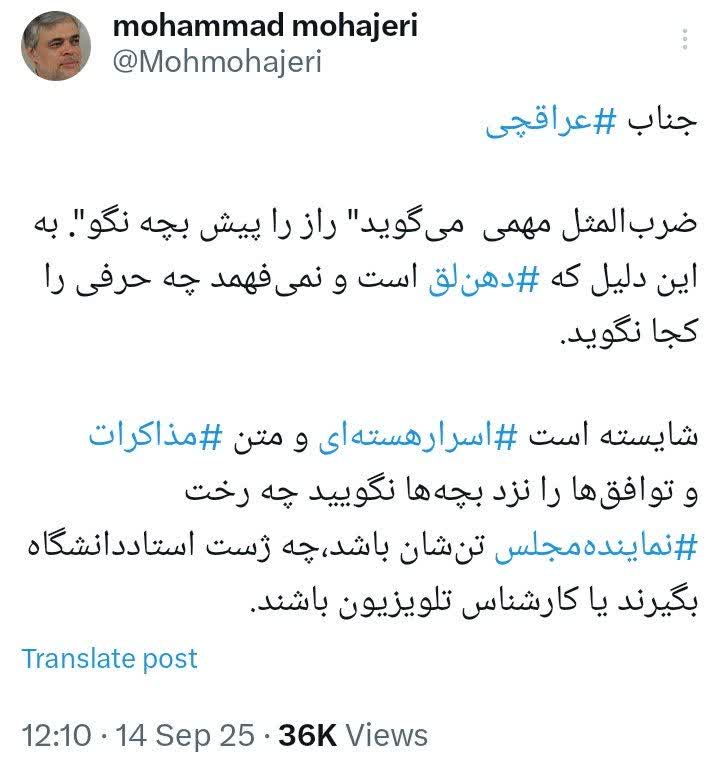 بی‌احترامی محمد مهاجری عضو بدسابقه شورای اطلاع رسانی دولت به نمایندگان‌ مجلس.