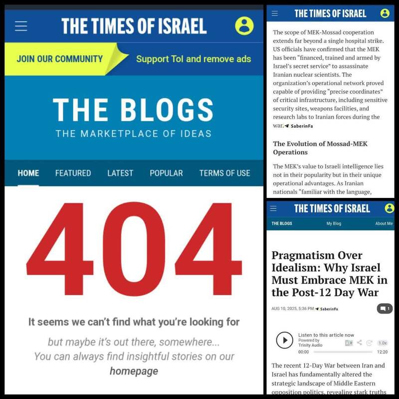 روزنامه صهیونیستی «تایمزآواسرائیل» گزارش افشاگرانه خود که مُهر تاییدی بر اسناد ارائه‌شده در دادگاه رسیدگی به جنایات منافقین بود را حذف کرد!