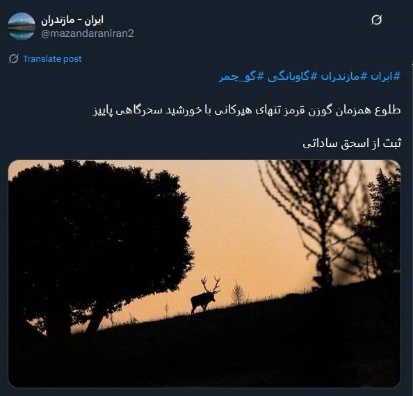 عکس/ طلوع گوزن قرمز هیرکانی با خورشید