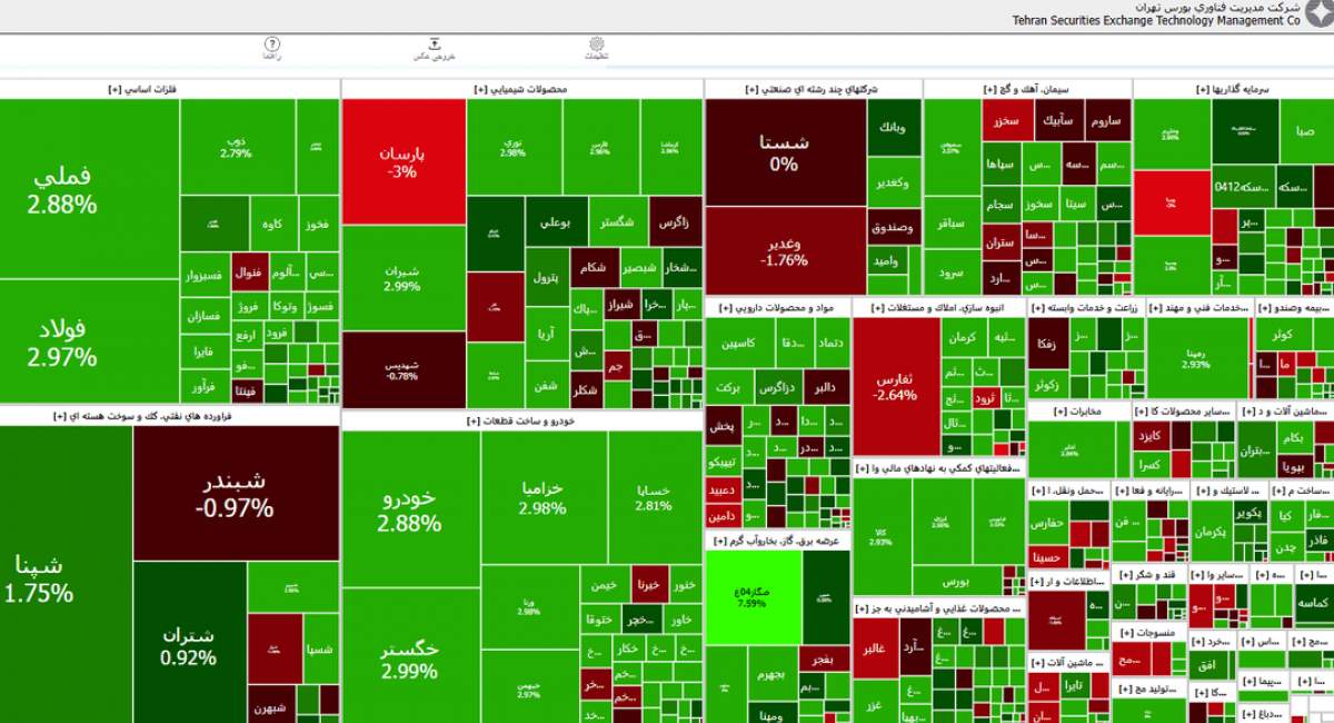 به گزارش جهان نیوز به نقل از فارس، بورس اوراق بهادار تهران امروز هم در روند رو به رشد قرار گرفت و در پایان معاملات همه شاخصهای بورس سبز ماندند. شاخص کل بورس با افزایش ۴۱ هزار و ۴۴۸ واحد به رقم ۲ میلیون و ۹۳۲ هزار و ۱۴۶ واحد رسید. ارزش روز بازار در بورس تهران به ۸۷ هزار و ۹۷۹ میلیارد تومان معادل ۸۷ میلیارد دلار آزاد آزاد رسید. معاملهگران امروز بیش از ۳۱ میلیارد سهام و اوراق مالی در قالب ۴۳۶ هزار نوبت معامله و به ارزش ۱۴ هزار و ۱۸۷ میلیارد تومان داد و ستد کردند. شاخص کل فرابورس ایران نیز با افزایش ۲۰۰ واحد به رقم ۲۵ هزار و ۲۷۴ واحد رسید. ارزش روز بازار اول و دوم فرابورس به یک میلیون و ۳۷۴ هزار میلیارد تومان و ارزش روز بازار پایه فرابورس ۳۴۵ هزار میلیارد تومان شد. معاملهگران امروز بیش از ۹ میلیارد سهام و اوراق مالی در قالب ۱۷۹ هزار نوبت معامله و به ارزش ۱۰۹ هزار میلیارد تومان داد و ستد کردند. همه شاخصهای فرابورس به جز شاخص بازار اول فرابورس امروز سبز شدند.