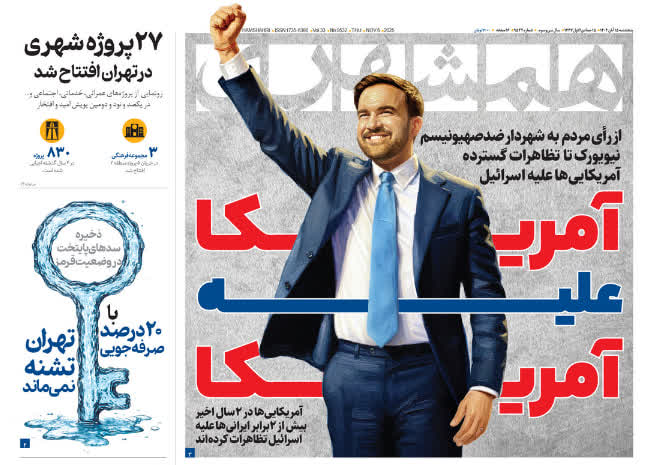 صفحه نخست روزنامه همشهری به انتخاب ممدانی به عنوان شهردار نیویورک اشاره کرده است.