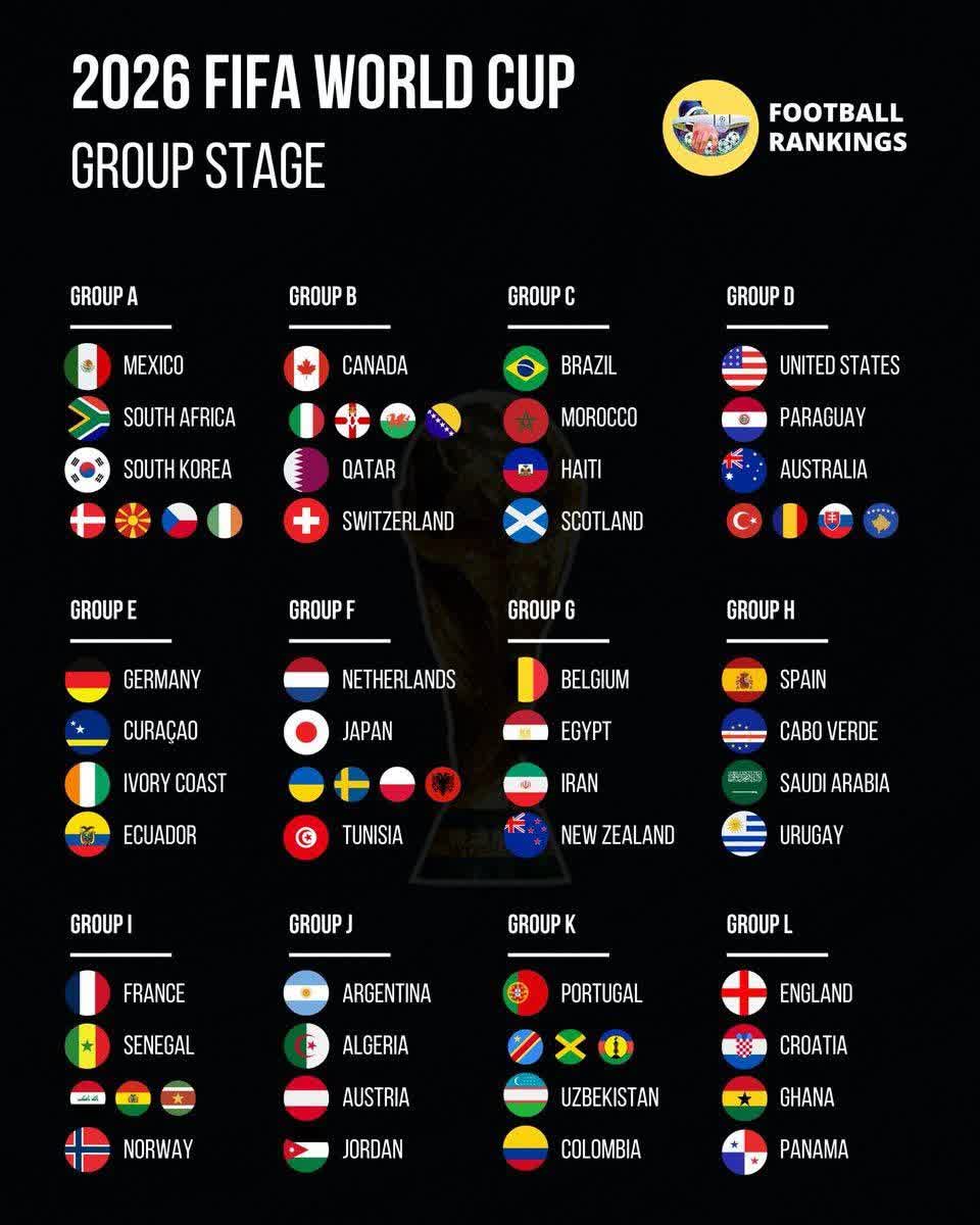 قرعهکشی جام جهانی فوتبال ۲۰۲۶ از ساعت ۲۰:۳۰ دقیقه امشب به وقت تهران برگزار و گروه بندی این رقابتها مشخص شد.