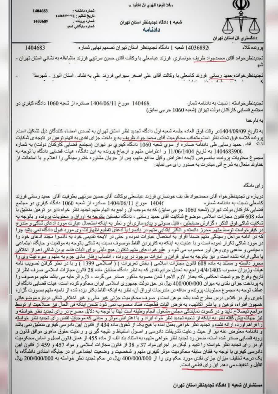 محمدجواد ظریف به پرداخت جریمه نقدی ۲۰ میلیون تومانی به اتهام «توهین» در نتیجه شکایت حمید رسایی محکوم شد.