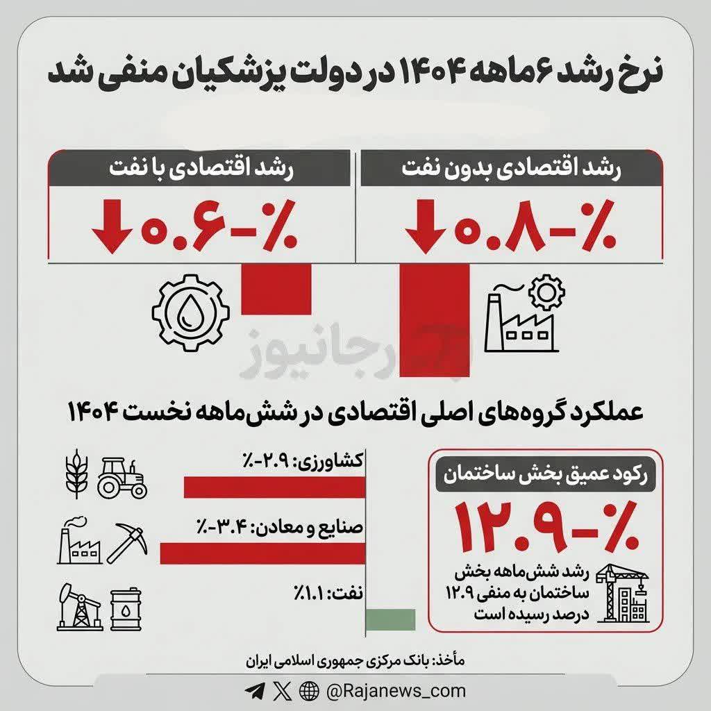 نرخ رشد ۶ ماهه ۱۴۰۴ در دولت کارشناسان منفی شد!